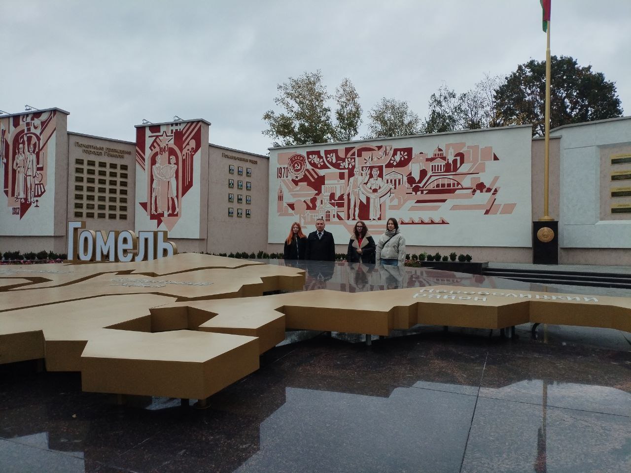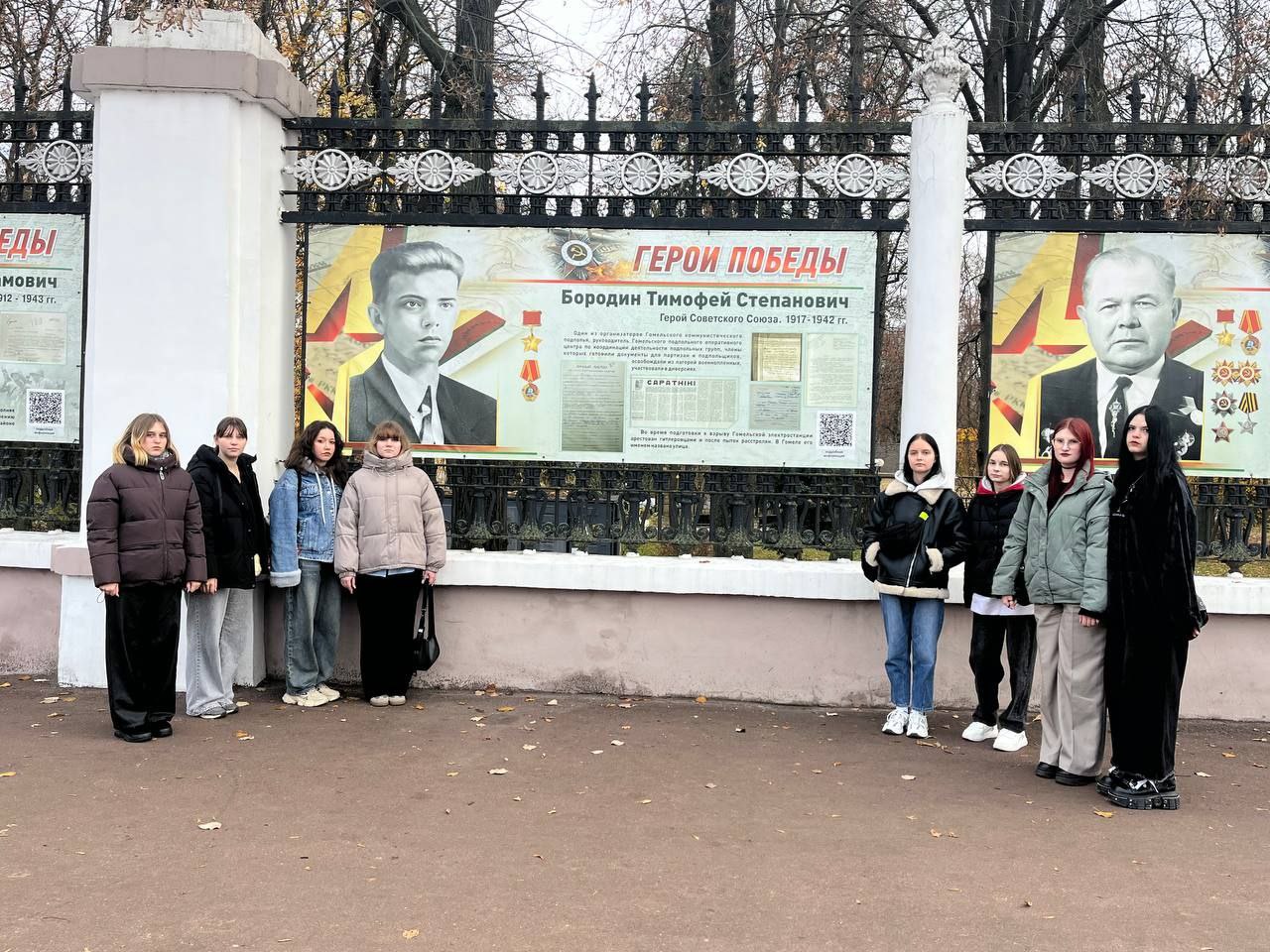 Именно здесь началась военно-патриотическая экскурсия, организованная Гомельским туристическим центром. Учащиеся колледжа кулинарии и горожане сделали первые шаги по маршруту, который не оставляет равнодушным. С уважением и благодарностью они остановились у стел с именами Героев Советского Союза и Полных кавалеров ордена Славы.